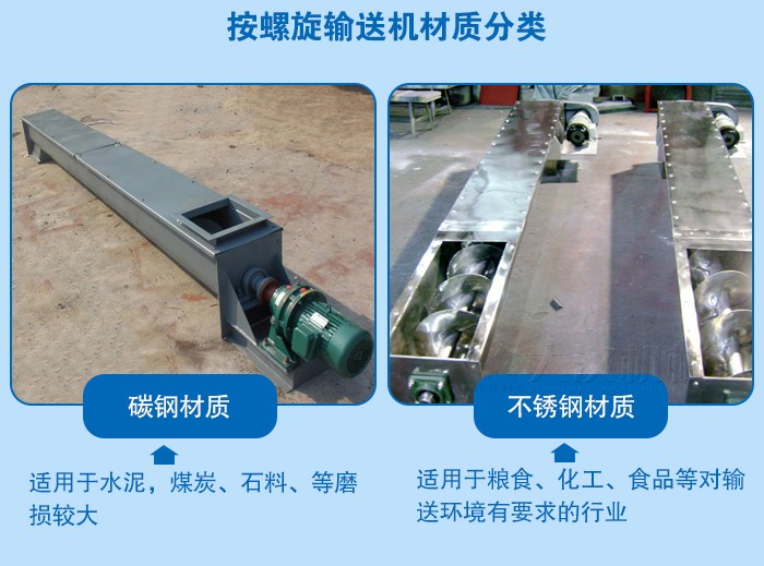 2、不銹鋼U型螺旋輸送機-主要適用于糧食、化工、食品等對輸送環境有要求的行業,清潔度高,并且不會對物料產生污染,使用時間長,但是造價相對較高。