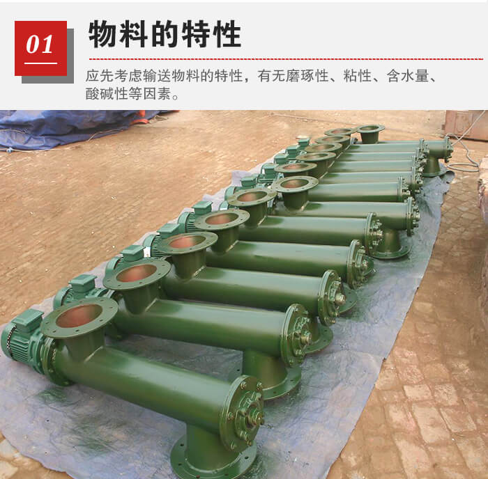 螺旋給料機的選型首先應綜合考慮輸送物料的特性,有無磨琢性、粘性、含水量、酸堿性等等因素,做到針對不同的物料而設計合適的機型。