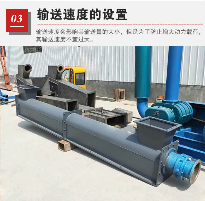 螺旋給料機輸送速度會影響其輸送量的大小,但是為了防止增大動力載荷,其輸送速度不宜過大。如果未來增加驅動軸轉速而提高輸送能力,就會對螺旋葉片產生較大沖擊力,導致葉片與U型槽體磨損加大,影響設備的使用壽命。