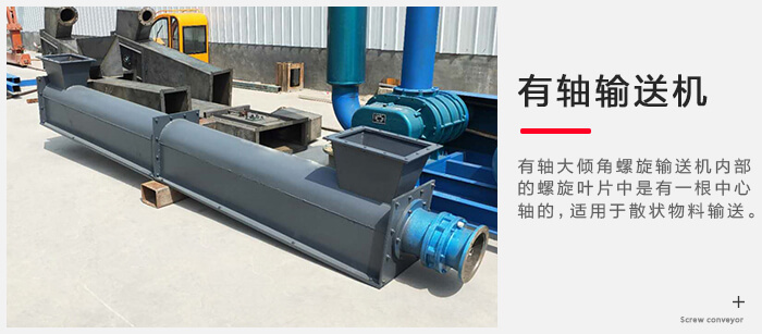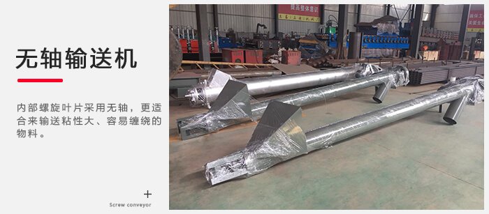 而無(wú)軸大傾角螺旋輸送機(jī)與有軸的恰恰相反,內(nèi)部螺旋葉片采用無(wú)軸,更適合來(lái)輸送粘性大、容易纏繞的物料,這是有軸輸送機(jī)做不到的。