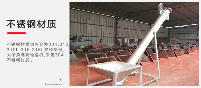 不銹鋼材質(zhì)也可分為304.310.310L.316.316L多種型號(hào),大傾角螺旋輸送機(jī),所有的機(jī)型都可以采用304不銹鋼材質(zhì),但是當(dāng)輸送距離長(zhǎng)時(shí),表面積增大,打磨難度增加,一般會(huì)選擇噴砂,從視覺(jué)上就不會(huì)像常見(jiàn)的不銹鋼那樣光亮,但質(zhì)量不會(huì)有影響。